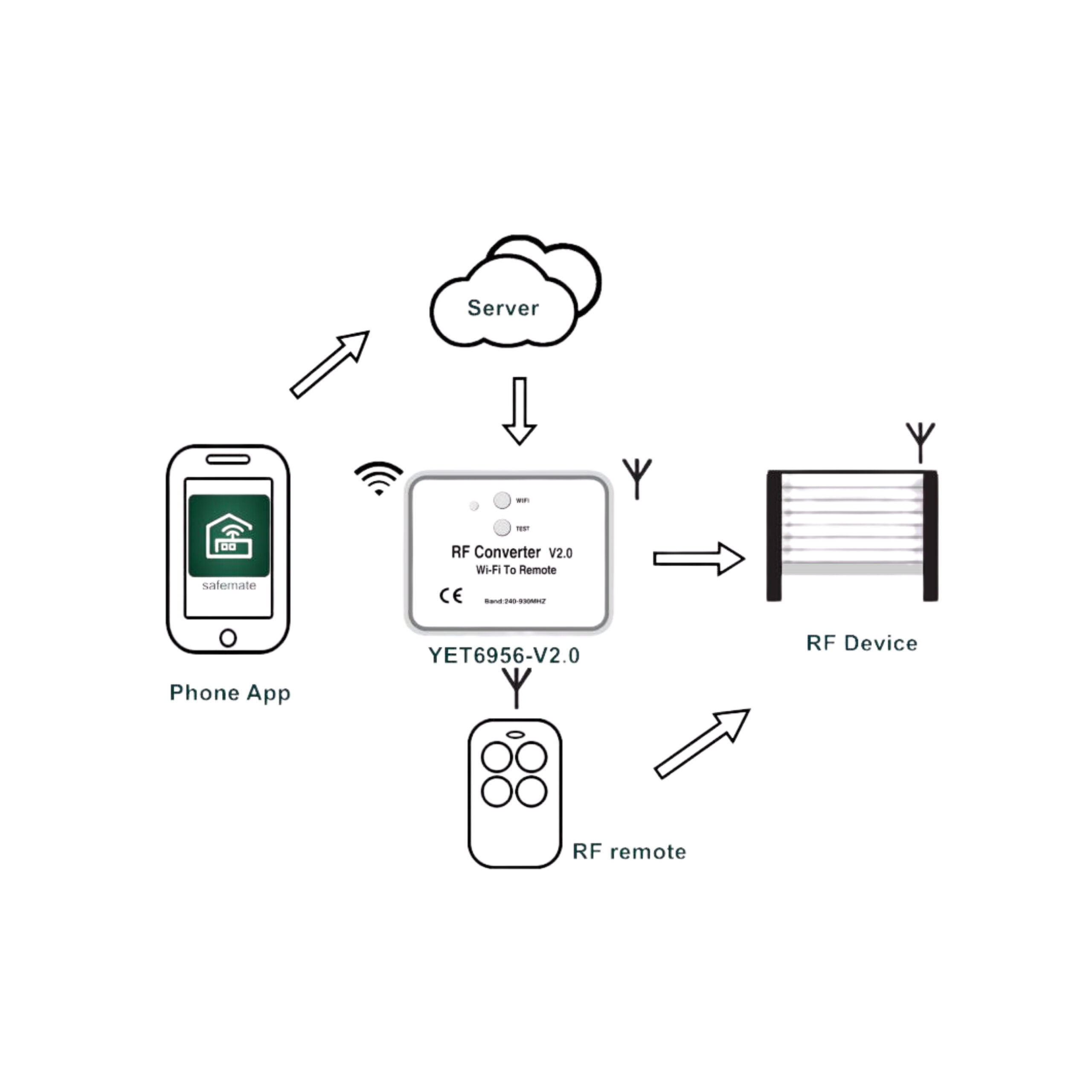 Universal Wireless WiFi RF Converter — Remote Control via Phone for Smart Home (240–930 MHz)